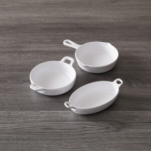 Serve bar snacks, small entrées, or sides in this fresh white 4-3/4″ L x 3″ W x 1-1/4″ H oval melamine faux cast iron casserole dish! The look of cast iron provides a classic feel, and the melamine construction allows for easy cleaning and durability. Pair this piece with serving boards from our Melamine Naturals collection for a complete, timeless look!