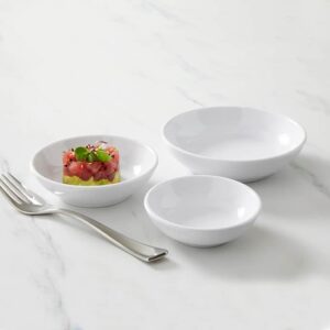 This 3 ounce crisp white melamine bowl for sauces, dips or little snacks! The melamine construction is highly durable and dishwasher-safe, and the white color will easily match any of your existing decor and dishes. Pair with our melamine serving boards for a durable and attractive look!