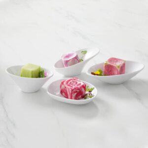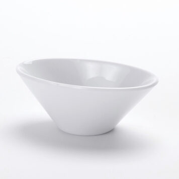 Make your food the start of the show by serving it in this 2-1/2 ounce white melamine shaped bowl! It has a unique 4-1/4″ x 2-1/2″ oval, tilted design that ensures that your food is the star of the show. Use it to present decadent desserts or a delicious amuse-bouche. The crisp white melamine construction ensures it’s durable and easy to clean. Pair with our olive wood serving boards for an warm and upscale feel!