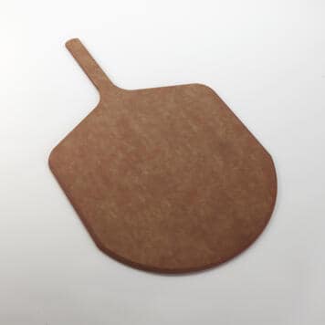With a blade length of 16″, blade width of 17″, and overall length of 26″, this pressed wood peel is perfect for artfully serving pizza, flatbread, artisanal bread, and charcuterie. Unlike traditional wood peels and boards, this high-quality peel is made of NSF and USDA listed material that does not harbor bacteria and will last long in a commercial setting. It features tapered edges that gently slide under food with ease, as well as a short wooden handle that allows for quick and comfortable serving. In addition to being highly functional, this peel has a natural beige color and smooth exterior that are a step up aesthetically from typical displayware. Use this peel at your pizzeria, restaurant, bakery, or hotel. To care for your wood peel, wipe it clean with a damp cloth without soaking.