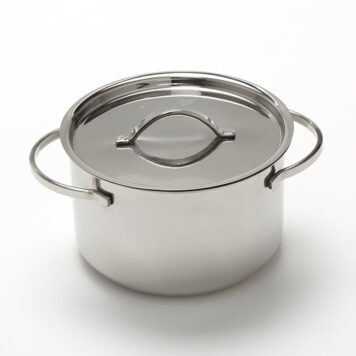 Step up soup and side presentation with this adorable 14 ounce mini stainless steel pot and lid! The lid completes your stove-to-table presentation while simultaneously keeping food hot. Create a beautiful, mixed materials display by pairing this piece with one of our wooden platters and serving boards!