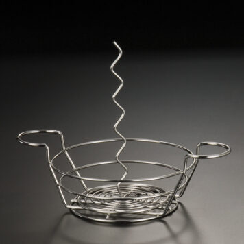 This 9″ high onion ring spindle is the perfect way to present onion rings, doughnuts, or bagels! Catch the eyes of guests by putting a unique spin on your presentation, and add a bit of shine to the table too. Its round, 5-1/4″ bottom offers a smaller footprint to save vital table space when paired with our compatible wire baskets.