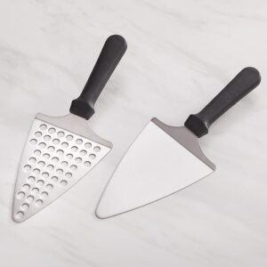Our heavy-duty pizza servers are a kitchen staple! Featuring a heat-resistant polypropylene handle, these servers allow you to safely serve your customers blazing hot pizza fresh out of the oven. Unlike traditional servers, these servers are designed with an extra-large stainless steel blade that can stand up to even your largest pizza slices. The same goes for savory cake and pie slices, too. For even more versatility, you can opt for the server with perforated blade that conveniently doubles as a cheese grater!