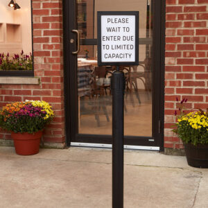 Whether you need to inform guests on your menus, where your event is, or just your promotions, this sleek 8-1/2″ W x 11″ L vertical black sign will help you out. Designed to be paired with the RBSBL retractable barrier, this sign will slide right into your setup for a streamlined look.