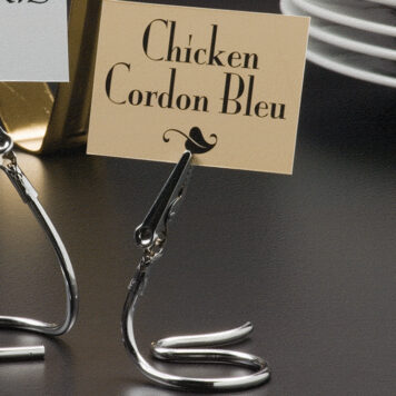 The organic S-shaped swirl of this stainless steel card holder is eye-catching and uber contemporary. It’s stylishly unconventional, and the attached alligator clip elevates your signage so it can be seen from across the dining room. If you’re looking for a card holder that makes a statement, look no further. Your guests will love the serpentine curves of this artfully functional piece, guaranteed.