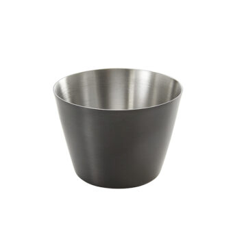 With a capacity of 2-1/2 ounces, this black satin stainless steel sauce cup offers optimal versatility and optimal aesthetics. It’s the perfect capacity for bridging individual and shared portions, or you can serve it up alongside a few others in different colors for a flight of sauces. With a piece like this, your options are endless.