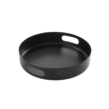 Bring a modern edge to your service with our 12-1/8″ diameter tray in a striking black finish. Crafted from durable stainless steel and featuring 2-1/4″ tall edges, this tray ensures everything stays put, even when the night gets busy. Built-in handles mean you can serve up style without breaking a sweat, whether you’re showcasing appetizers or just adding a dash of drama to your décor. With this tray, it’s all about sleek service that’s as secure as it is stylish.