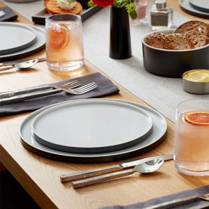 Put a new spin on your dinnerware with this dual-tone, 11″ DIA. x 1/2″ H graphite and white melamine plate! It’s the perfect size to use as a charger or to serve large appetizers or entrées and sides. The melamine is break-resistant and dishwasher safe. It has graphite coloring along the sides and a white surface, which automatically frames your food beautifully. It pairs perfectly with other shapes, shades, and sizes from the Unity Collection, so you can create the ideal look by mixing and matching.