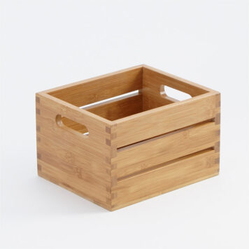 This 7-1/2″ x 6-1/4″ bamboo caddy has enough space to fully stock your tables and bar while keeping things clean and organized. You can also use this caddy as a riser or display shelf too! Bamboo is a great option thanks to its lightweight durability and fresh, attractive look. Pair with our matching wood crates in other sizes to pull your display and storage together!