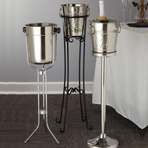 Make elegance a top priority with this beautiful wrought iron 8″ DIA. x 32-1/8″ H stand to present your chilled champagne or wine. It allows you to serve bottles to the table without taking up table space and keeps it conveniently in reach for wait staff. And you won’t need to compromise on presentation, either! It is strong and sturdy but still manages to be lightweight and easy to carry. Pair it with our copper plated hammered stainless steel champagne bucket for a supremely trendy look.